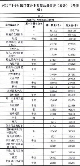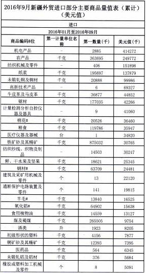 2016年1-9月新疆進(jìn)出口貿(mào)易統(tǒng)計(jì)表