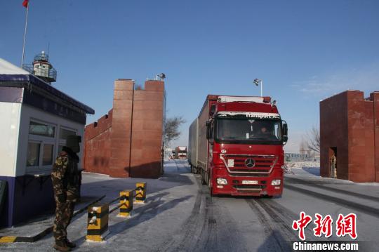 中國(guó)境內(nèi)的貨車在經(jīng)過(guò)查驗(yàn)后漸漸駛出。