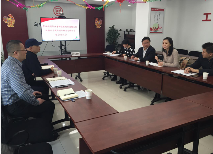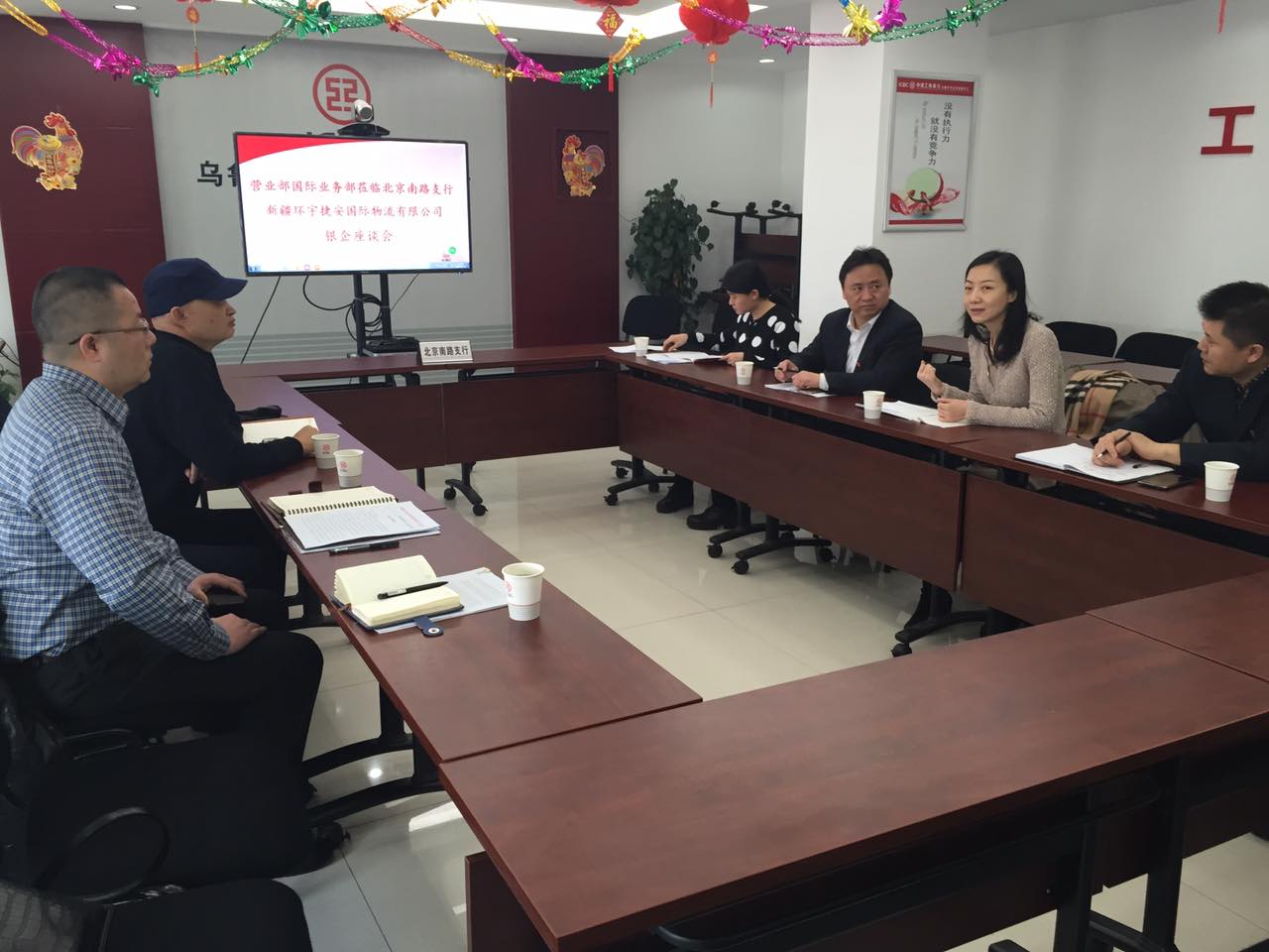 2017年2月16日上午11:30,假工行烏魯木齊市北京南路支行三樓多功能會議室,召開了工行與我公司關(guān)于購付匯的“銀企座談會”。參加本次會議的有---環(huán)宇捷安:李清貴董事長、梁志軍總經(jīng)理、涉外經(jīng)理麗薩;工行:自治區(qū)分行國際業(yè)務(wù)部副總經(jīng)理覃英、國際業(yè)務(wù)部執(zhí)行經(jīng)理朱玉文,工行北京南路支行李行長、支行涉外業(yè)務(wù)經(jīng)理夏小雙,共7人參加會議,會議由李行長主持。