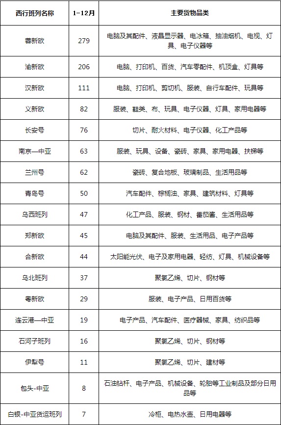 2016年途經(jīng)阿拉山口口岸的西行班列統(tǒng)計表