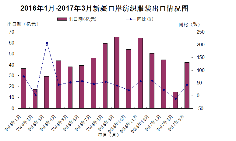 2017年一季度新疆口岸紡織服裝出口大幅增長(zhǎng)
